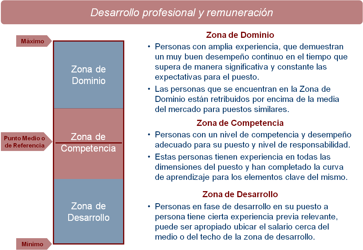“Si la persona está en un momento profesional de desarrollo donde puede aportar valor pero su experiencia es media o no tiene experiencia” continúa el profesor, “está en una fase de aprendizaje y tiene potencial pero no lo ha demostrado todavía para ese puesto en concreto. En este caso la persona estará en la franja media-baja de la horquilla, más cerca de los 18.000 que de los 35.000 euros. Por el contrario, si se trata de una persona que tiene muchísima experiencia que puede incluso marcar determinadas tendencias en el mercado, o en un servicio o producto que domina excepcionalmente, estará en la parte alta. Si el profesional se encuentra en la parte media, se dice que está en su momento de competencia profesional”.